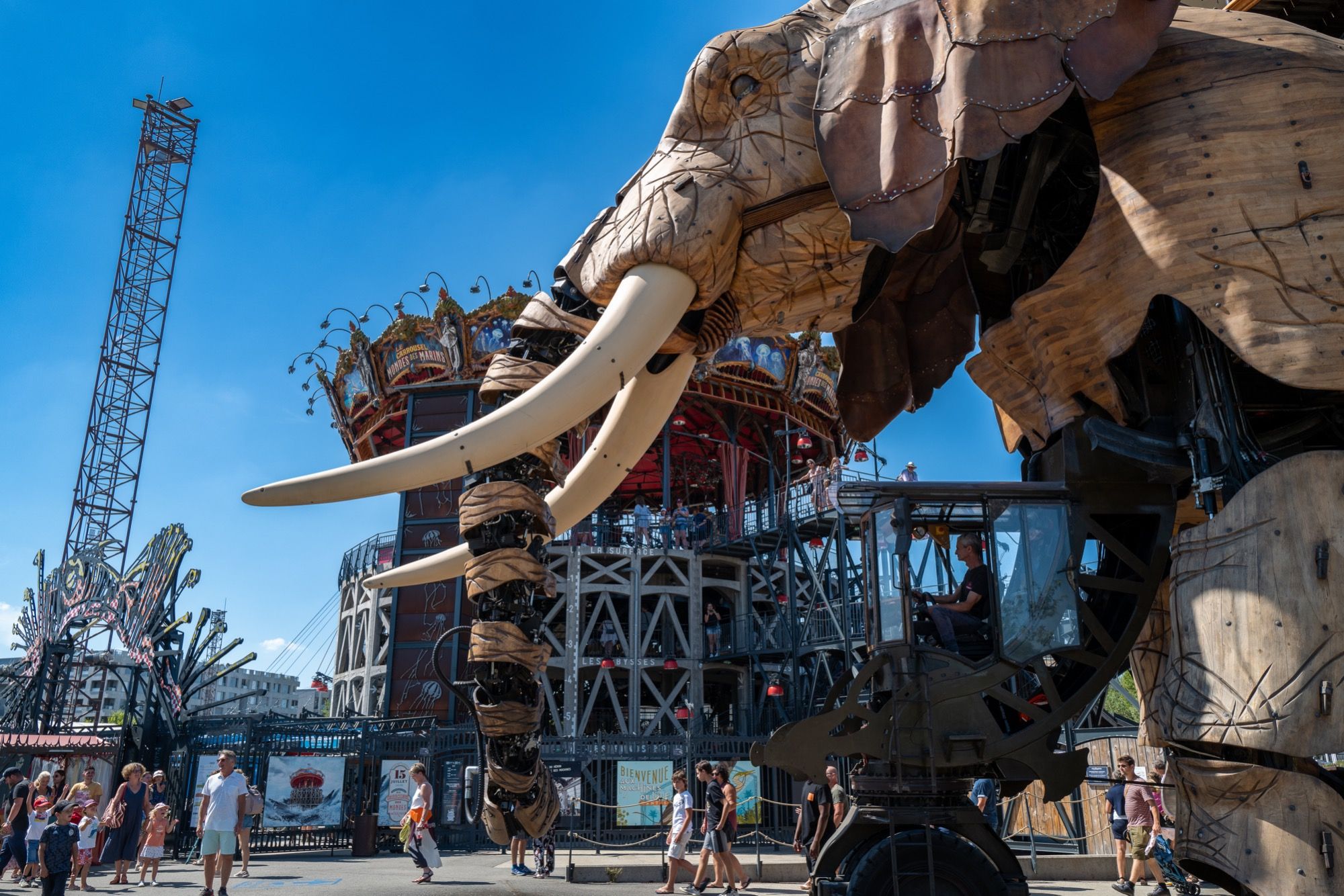 Avec leur esthétique unique, mêlant art et ingénierie, ces créations spectaculaires insufflent une nouvelle vie aux anciens chantiers navals. Le Grand Éléphant, majestueux et animé, reste une figure emblématique, tandis que le Carrousel des Mondes Marins et l’Arbre aux Hérons promettent un voyage imaginaire sans égal.