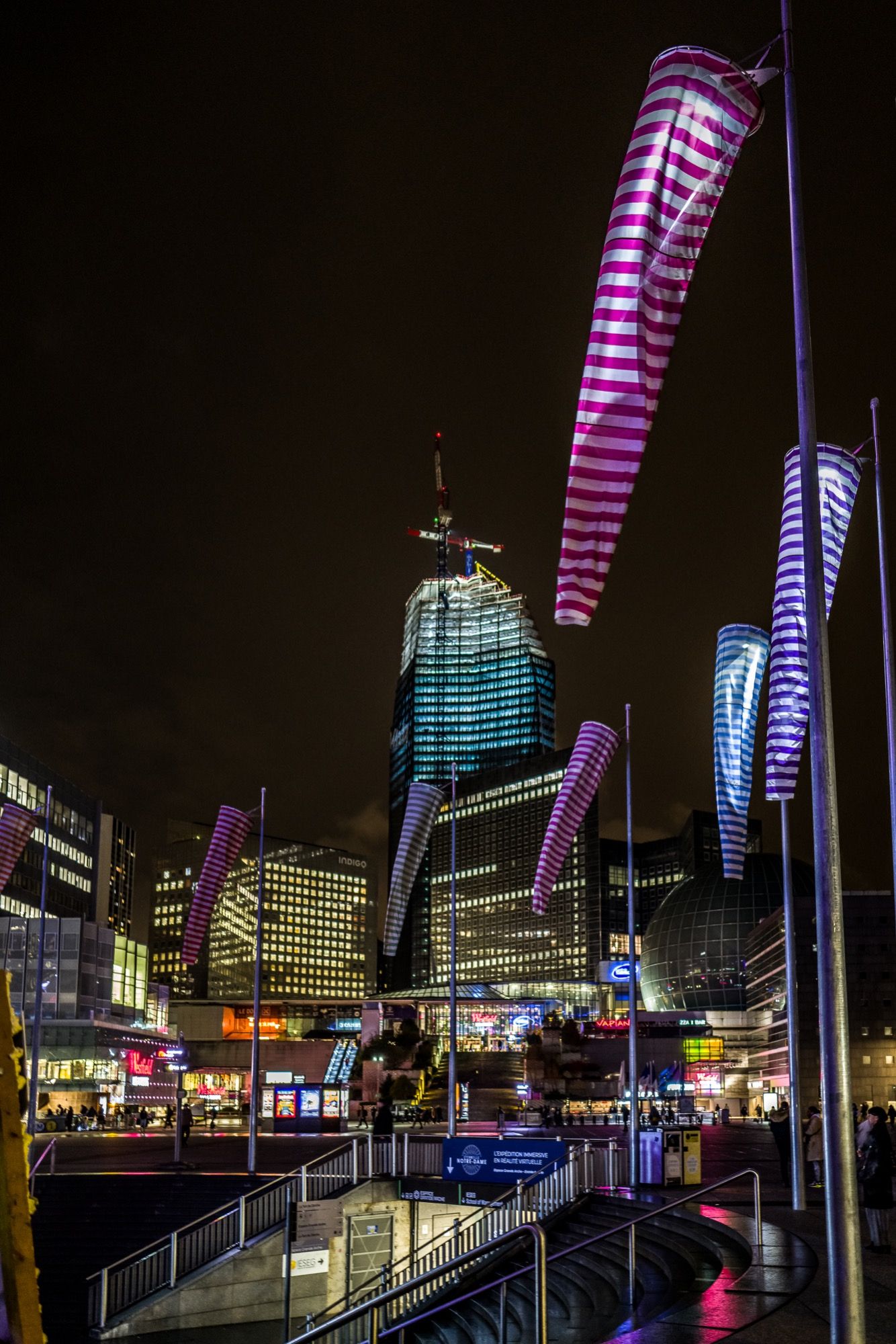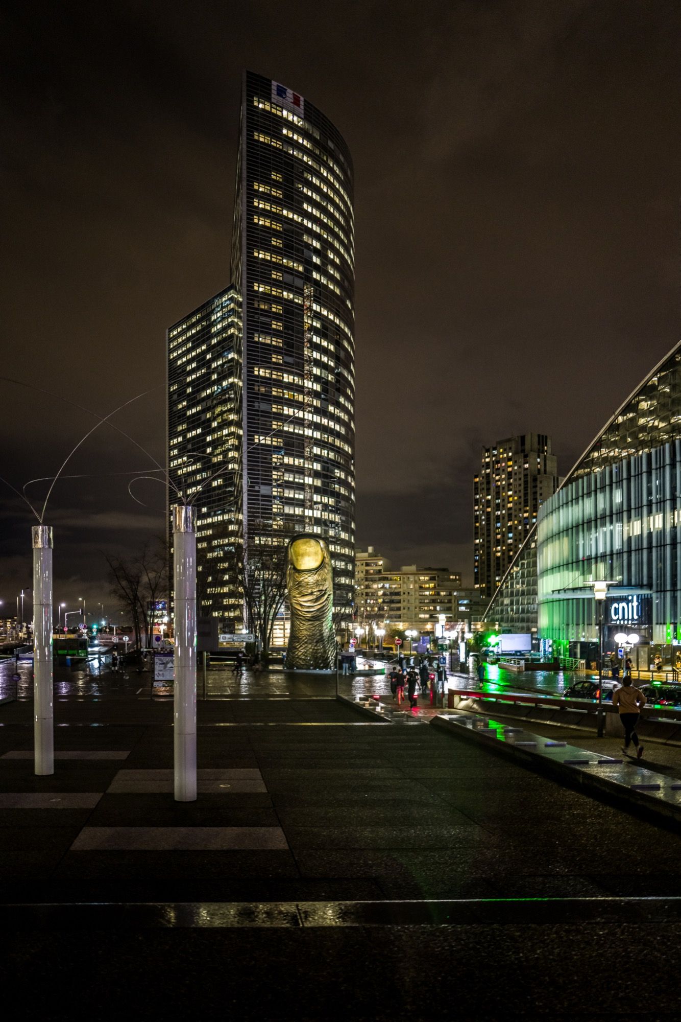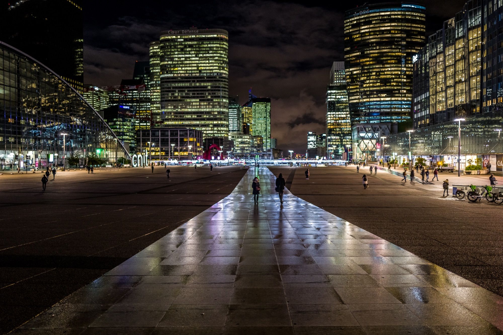 À La Défense, les nuits prennent une teinte électrique. Les tours illuminées percent l’obscurité, projetant leurs reflets futuristes sur le sol. C’est un monde presque irréel, où l’architecture impose sa présence, entre vide et dynamisme.