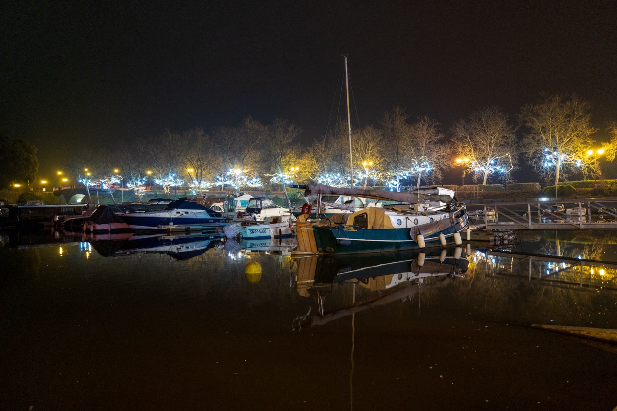 Une fin d’automne glaciale a offert une opportunité unique : capturer les illuminations de ma ville, Sucé-sur-Erdre, sous un angle inédit.